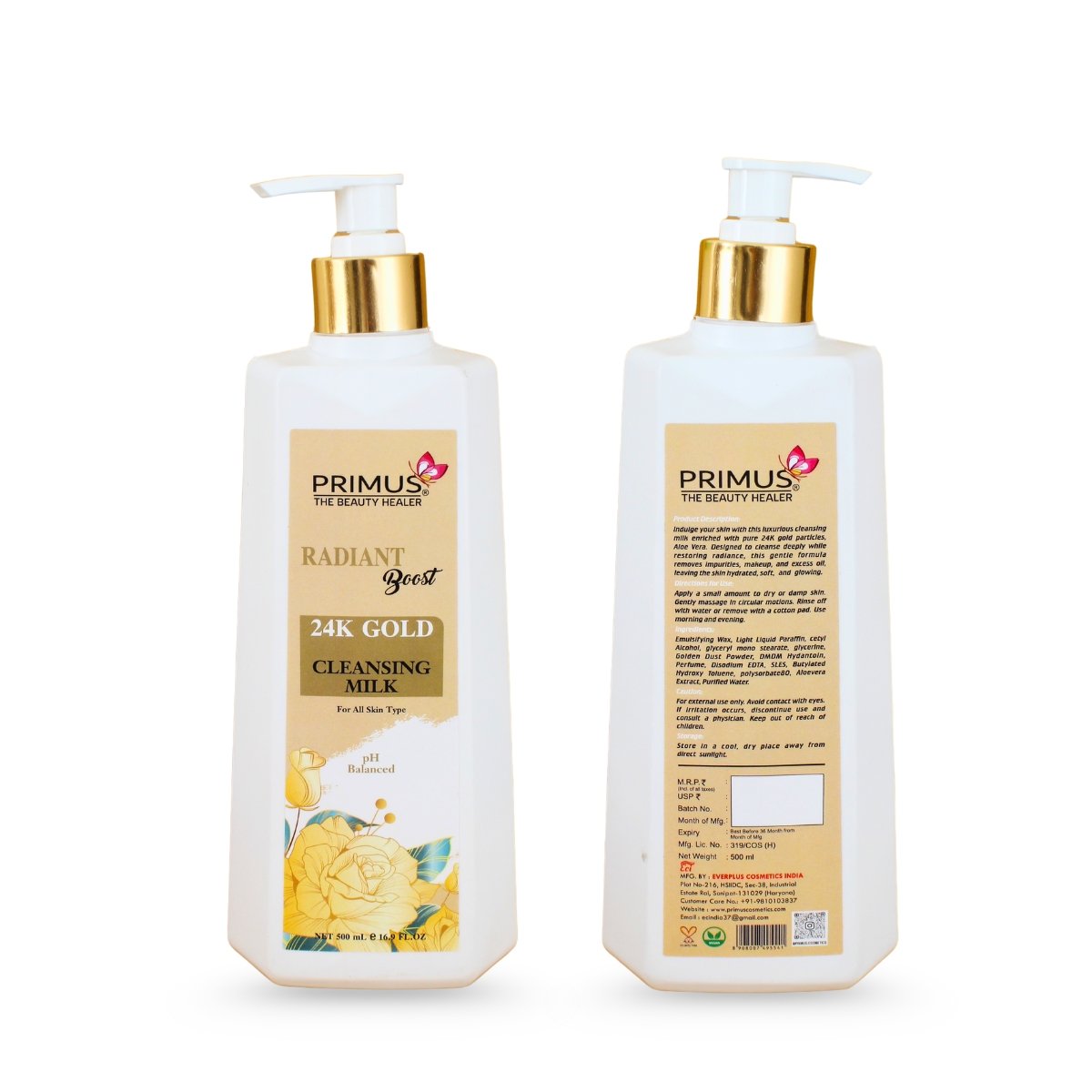 Primus 24K Gold Cleansing Milk – Luxurious Gold Infused Gentle Cleanser 500 ML