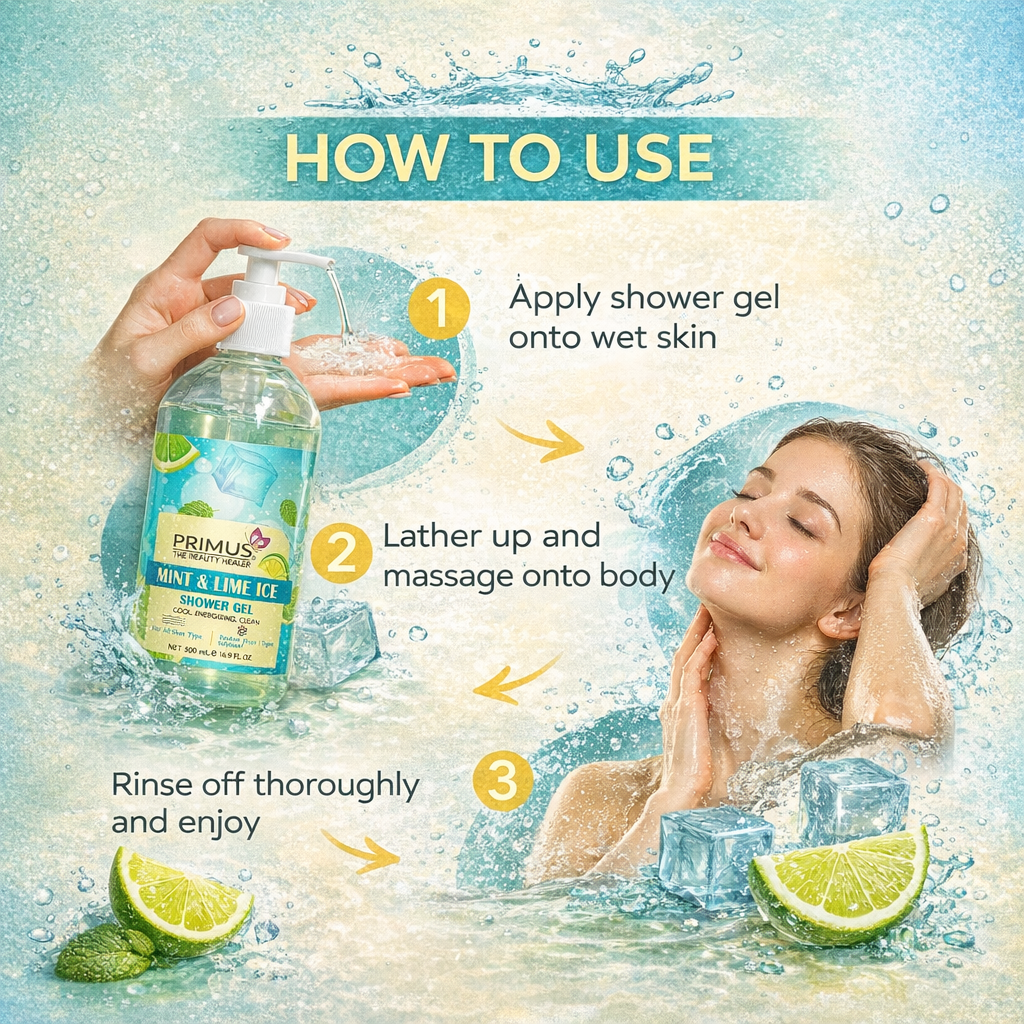Experience the ultimate cooling sensation with Primus Mint & Lime Ice Shower Gel 500ML – a powerfully refreshing, energizing body wash that delivers an instant icy blast of invigoration, leaving you feeling completely awake, deeply cleansed, and refreshingly cool for hours. Infused with natural menthol from peppermint extract and zesty lime essential oils, this premium family-size shower gel doesn’t just clean – it transforms your shower into an energizing ice spa experience that revitalizes body and mind.