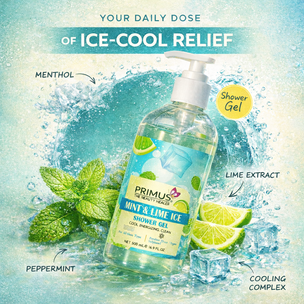 Primus Mint & Lime Ice Shower Gel 500ML – Beat the Heat with Instant Cooling Refreshment