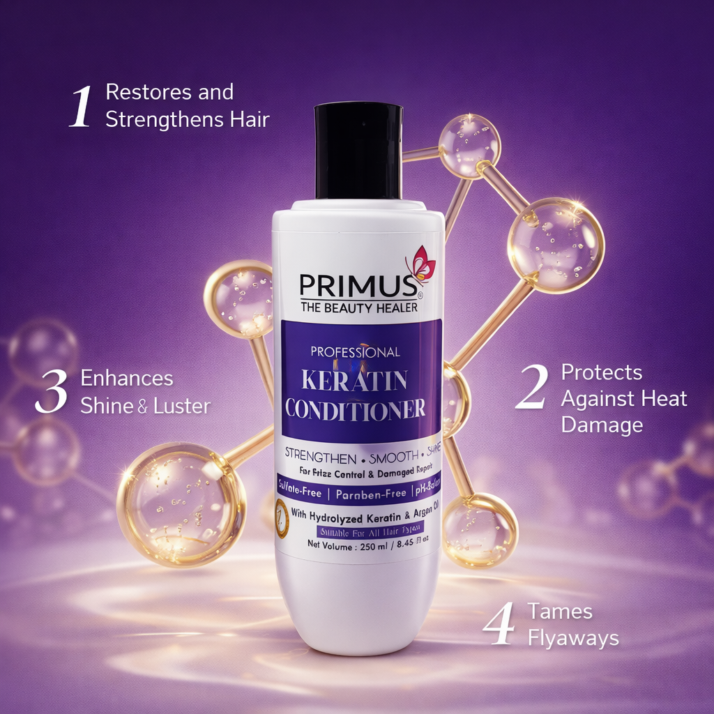 Primus Professional Keratin Conditioner is a hair care formulation designed to nourish, strengthen, and improve the texture of your hair. Enriched with keratin protein, this conditioner works to repair damage, reduce frizz, and restore smoothness to dry, rough, or chemically treated hair. The 250ML bottle provides a generous amount for regular use, making it suitable for maintaining healthy-looking hair over time.